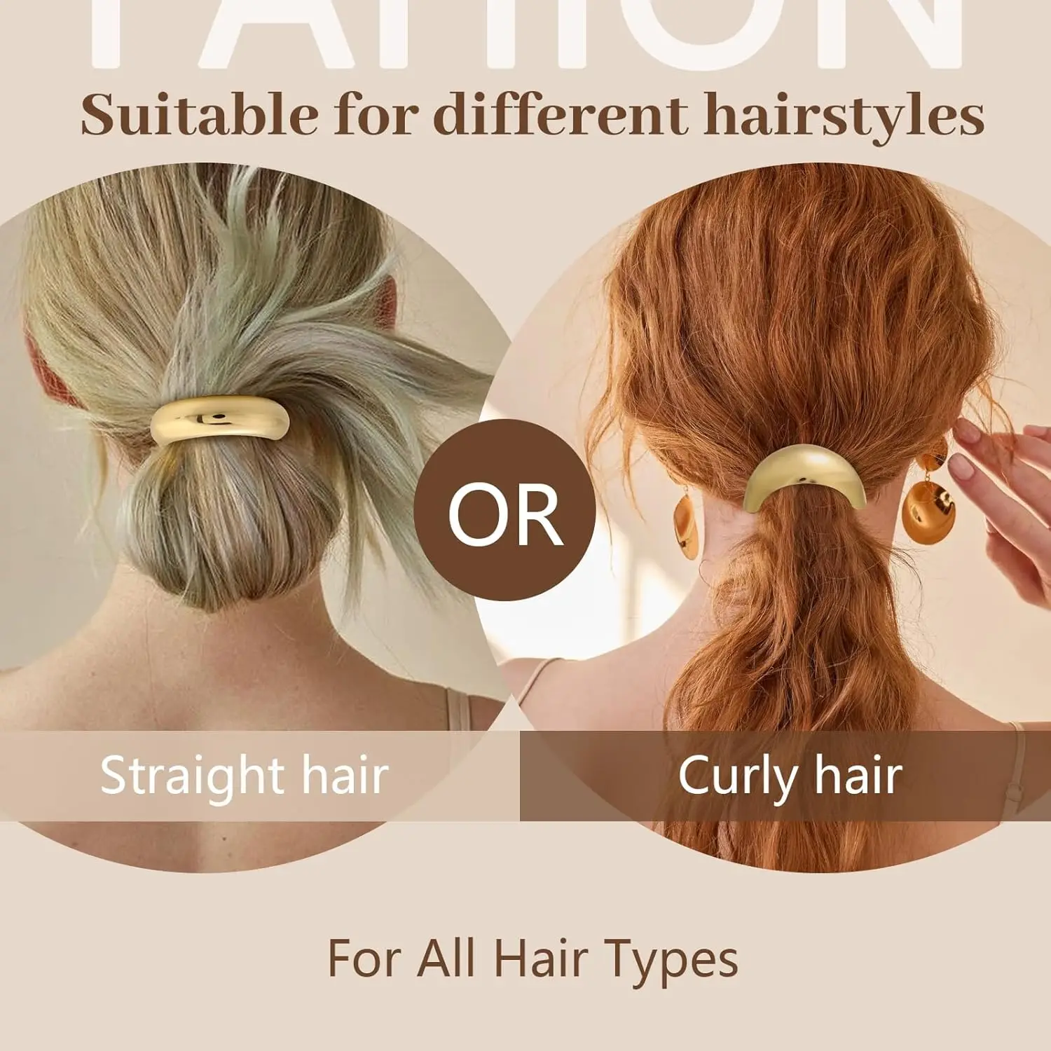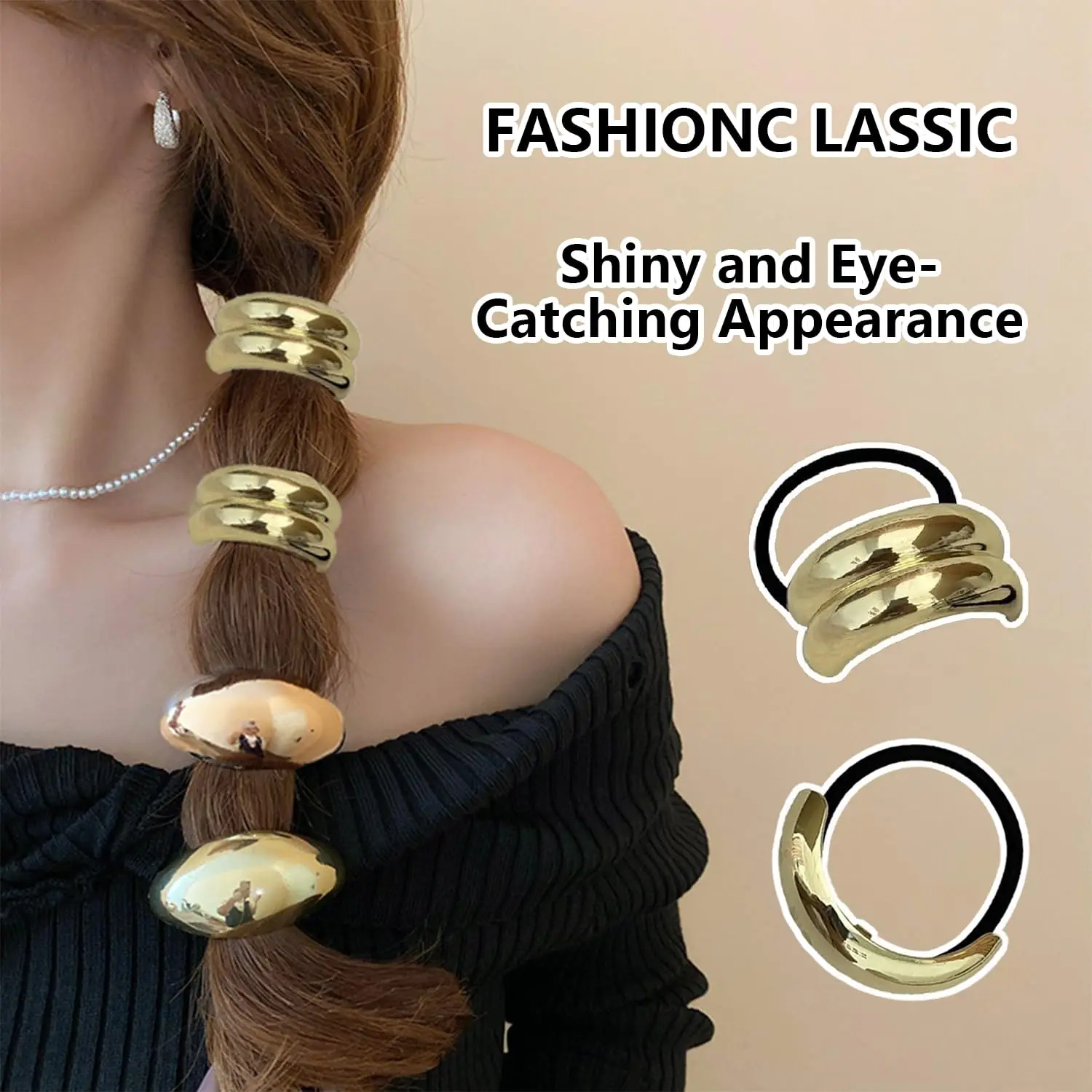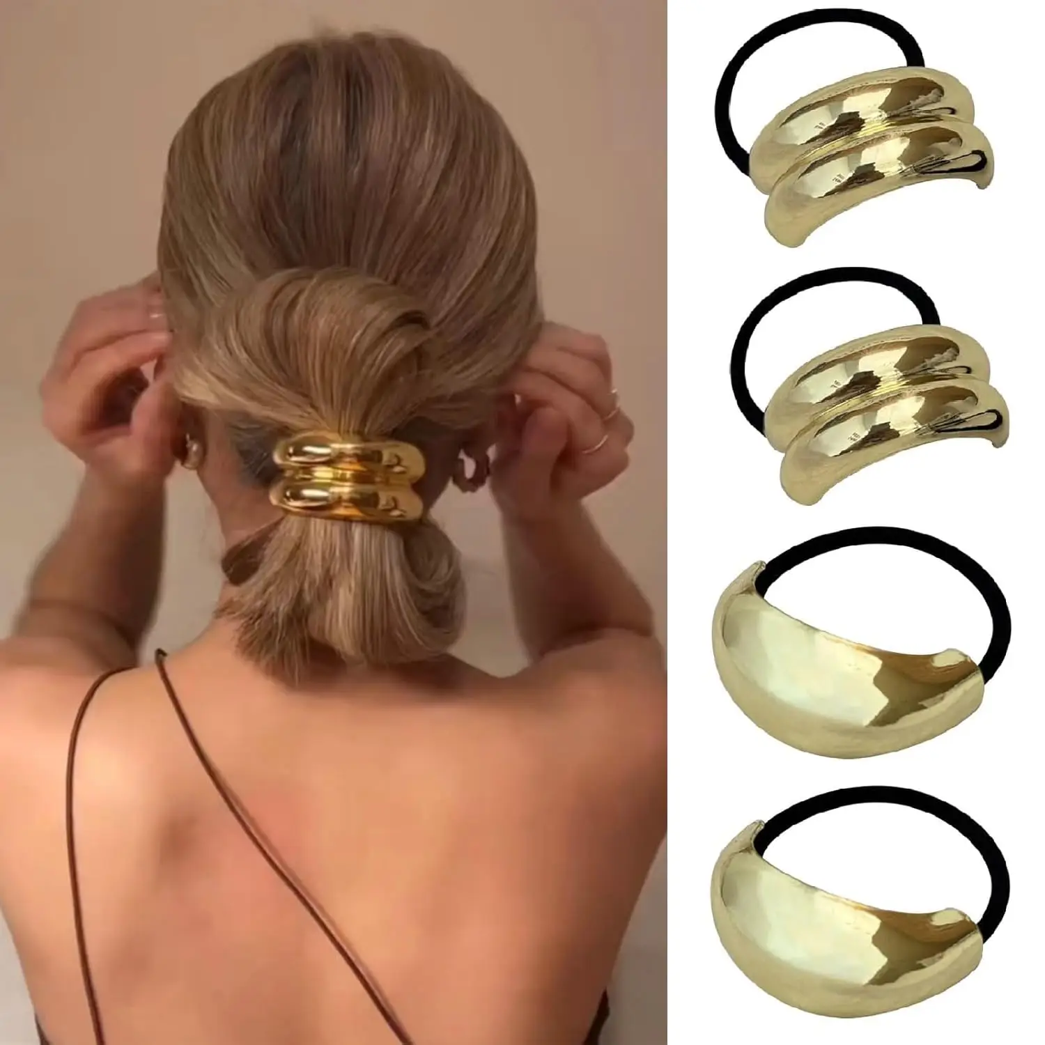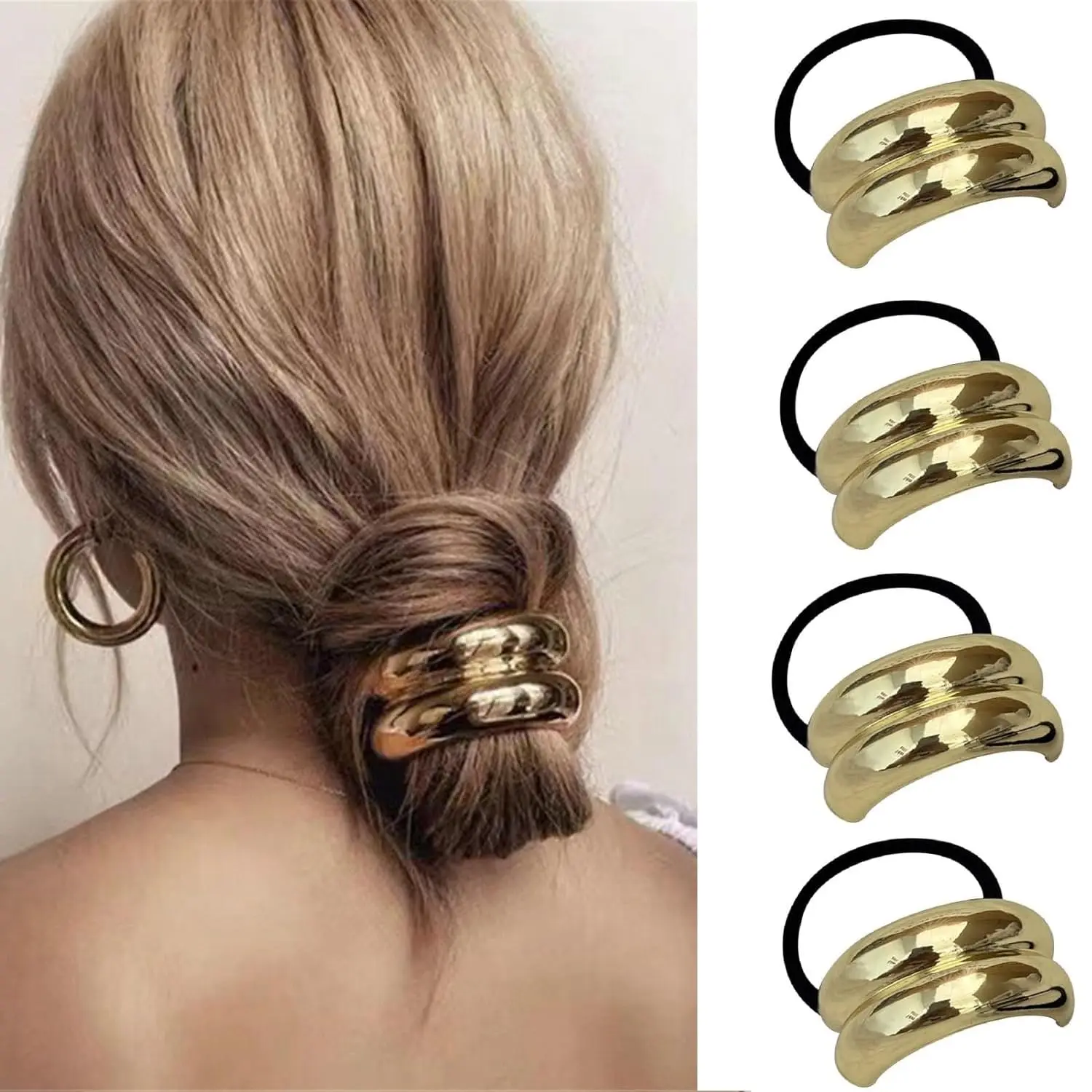 4PCS Metal Hair Ties Geometric Elastic Hair Cuff Ponytail Holder,Gold Hair Scrunchies,Fashion Hair Accessories for Women Thick