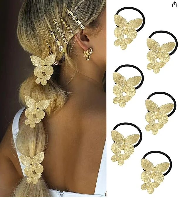 【Metal Hair Ties】: Our metal headband is made of high-quality alloy material and is carefully polished to make the gloss of the metal part lasting and not easy to fade. The black elastic headband is not easy to break and firmly fixes the hair.