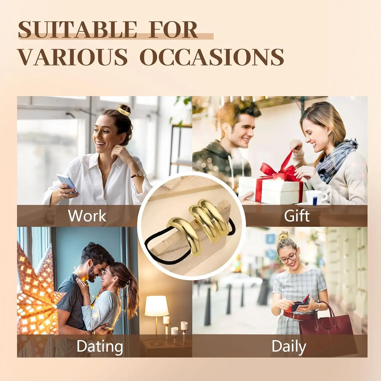 【Geometric Elastic Hair Ties】: The gold ponytail cuff headband is not only elastic enough to firmly fix various hairstyles, but also flexible and does not hurt the hair, and will not cause the problem of hair breakage or pulling pain.